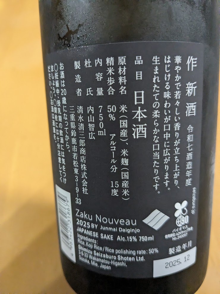 - 銘柄:作 Zaku Nouveau 2025BY 純米大吟醸(新酒)