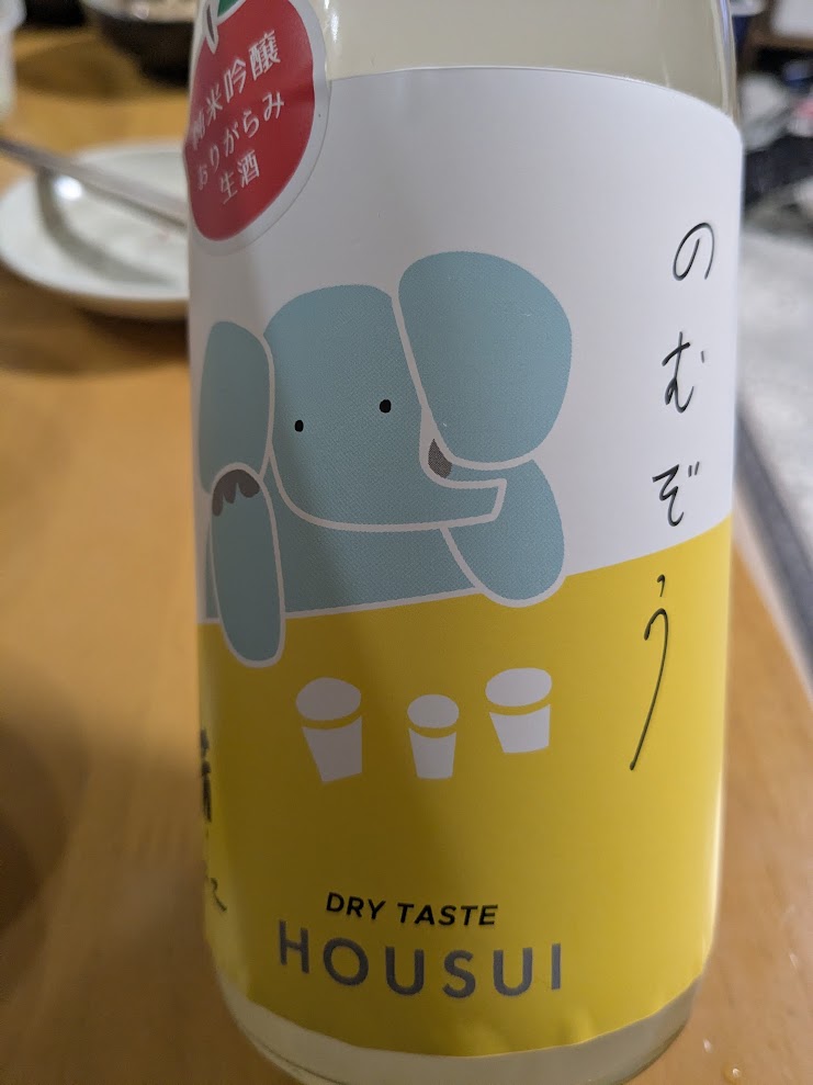 ポップなゾウのラベルに“DRY TASTE”。徳島・芳水酒造の季節酒です。おりがらみ生ならではの柔らかな口当たりに、青りんご系の爽やかな香り、さらりとしたミネラル感。後半は辛口のキレで小気味よく締まります。日常の食卓に置いておきたい“のむぞう”その名のとおり、ついもう一杯。